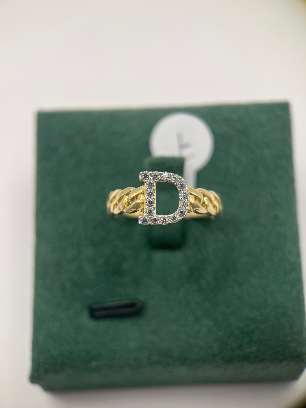 Anillo de oro amarillo de 10k con inicial D, talla «7»